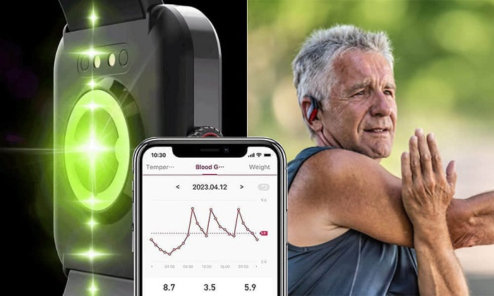 Bastando usá-lo como um relógio, ele pode monitorar com precisão outros quatro sinais vitais cruciais do seu corpo - frequência cardíaca, nível de glicose, temperatura corporal e níveis de oxigênio no sangue.